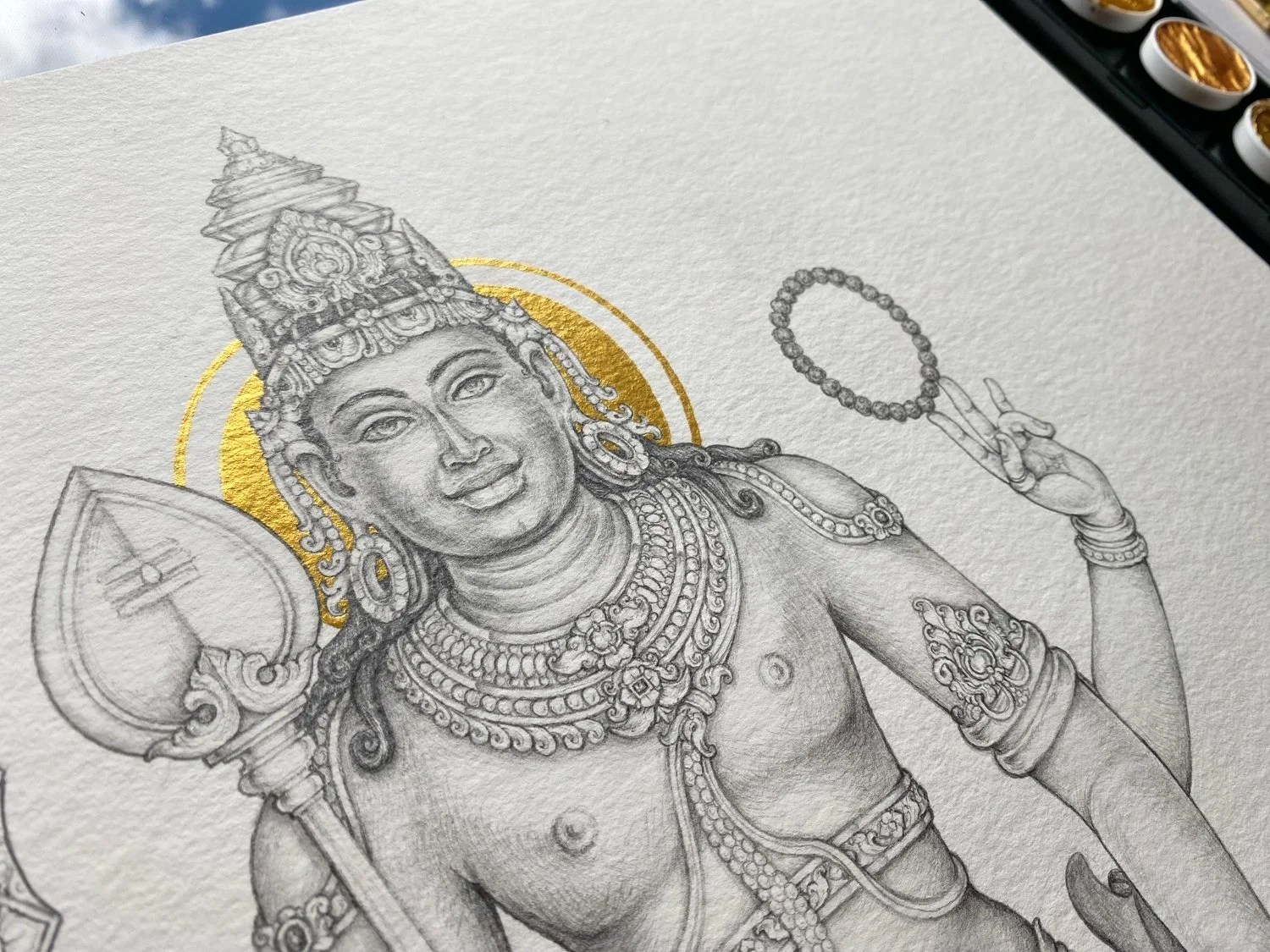 Kartikeya 2022Pencil and finetec gold on paper56 x 42 cmKartikeya | Subrahmanya | Murugan SHOP ART PRINTS View fullsize View fullsize View fullsize